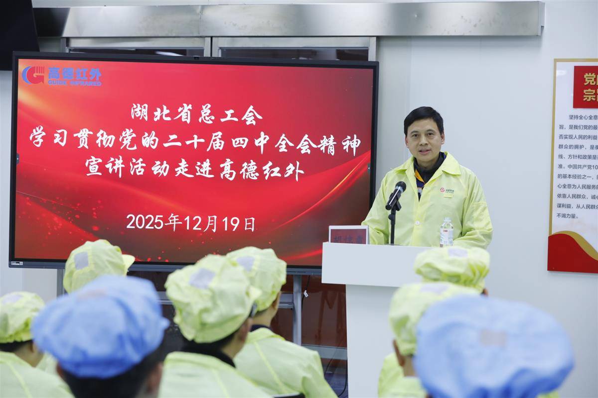 近日,在武汉高德红外有限公司精密装配线车间,省委讲师团“基层讲堂摘录”活动在这里举行,学习贯彻党的二十届四中全会精神。全国劳动模范、武钢硅钢部首席热处理操作工胡静雷,武汉理工大学马克思主义学院副教授、省委讲师团“理论热点面对面”专家组成员兰杰主讲。