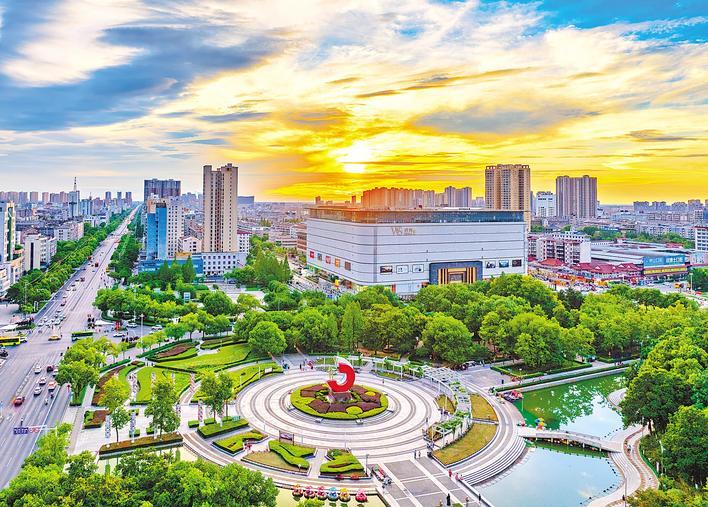 夕阳下的仙桃市城区展现出一幅“人、业、城、业”和谐和谐的时代新画卷。一座兼具工业活力和水乡光环的水滨花园城市正在崛起。 (湖北日报记者吴庆晓摄)