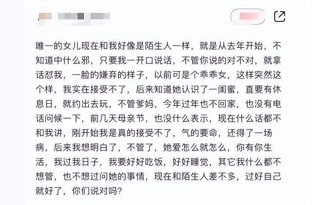 今天是Jingdu Jun的4366天,您可以长大。 Jingdu Jun General Dictionary启动了。 2154年的条目最近,一位母亲的投诉在小苏(Xiaohongshu)发表了与网民的激烈讨论。母亲在帖子中说,她的单身女儿变成了“陌生人” - “与她交谈后批评我”,“我从未在农历新年和假期里回家”,“我曾经是个好女孩”……对女儿的母亲的指控一直是很多讨论:有些人想到了人们的问题;有人认为他们的女儿应该理解父母的努力,并成为一个好又聪明的孩子。这场辩论就像一面镜子,反映了无数家庭的缩影,我们也被迫处理一个不情愿的事实:为什么有些家庭,父母和孩子显然彼此相爱,但总是用湿滑的语言和行为互相伤害?为什么有些家庭在孩子长大后仍然密切维持父母?一些就像小猫那弦上骨折,逐渐离开并远离父母,甚至想拼命摆脱原始家庭的束缚吗?当我们争论“父母的问题”或“孩子是无知的”时,我们确实探索了同样的深层问题 - 我们应该与父母保持什么样的关系? 01致敬父母:接受“听话”的孩子,并将因对观察者的抑制而改变。扩展全文